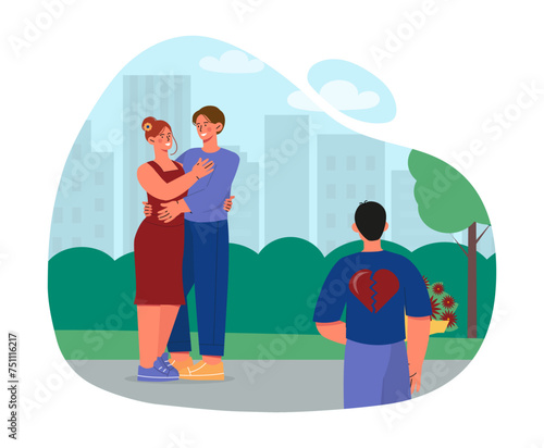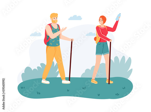 Man and woman runners with disabilities, flat vector illustration. Active disabled people jogging, running marathon on artificial limbs, prosthetic legs. Handicapped outdoor fitness, workout.