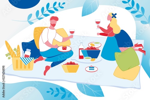 Russian cuisine landing page design, website banner template set, flat vector illustration. Woman cooking traditional russian dishes borscht and blini. Vodka alcohol drink, ancient samovar.