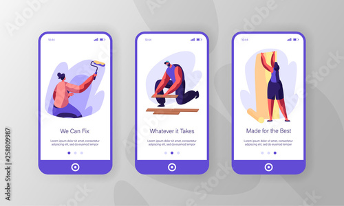 Russian cuisine. Traditional russian borscht, blini, vodka, ancient samovar. Mobile app screens. Vector banner template for website and mobile development. Web site and UI design illustration.