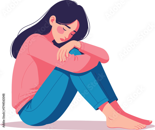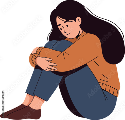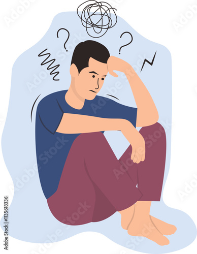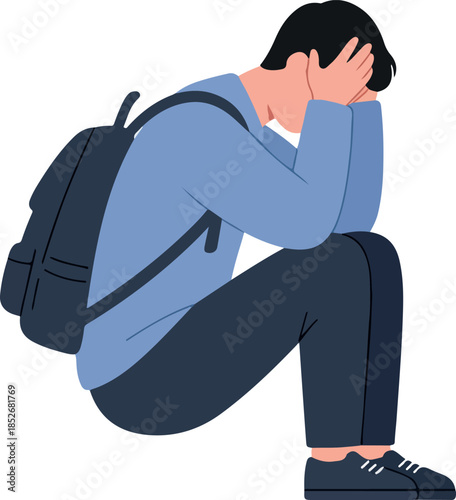 Sad teenager boy vector icon isolated on white background. Anxiety fear concept