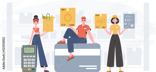 Micro male and female characters bank customers keeping valuables such as money, jewelery in huge safe deposit box, vector illustration. Bank services concept for web banner, website page etc.