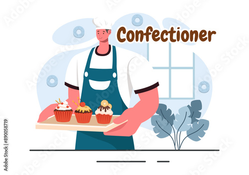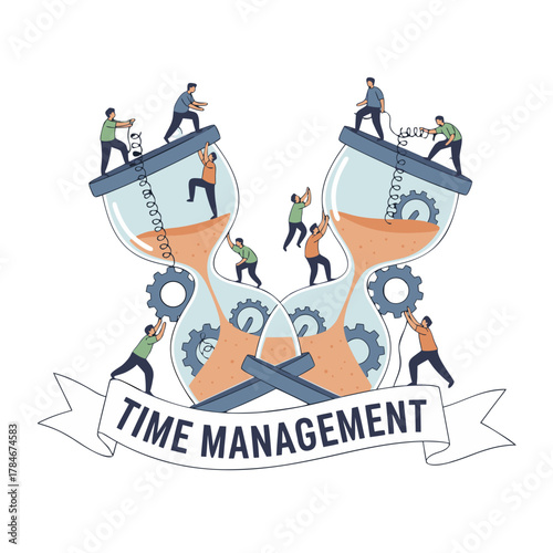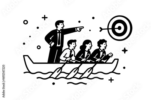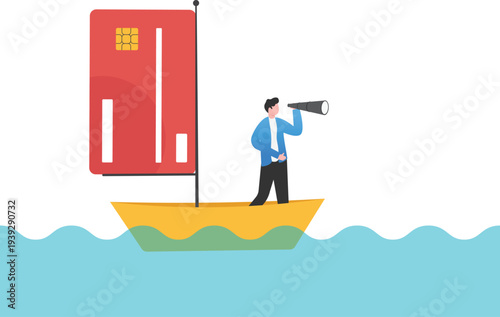Ship with captain and sailors on deck, vector illustration. Seamen dropping anchor, holding life buoy. Cruise, navigation, maritime, shipping concept for web banner, website page etc.
