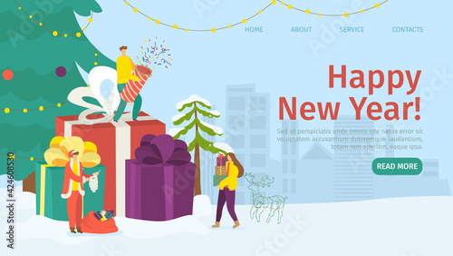 Sale in capital letters, shop assistants with price tag, megaphone, cashier, shopper woman buying gift using credit card, vector flat illustration. Sales and discounts, seasonal offers promotion.