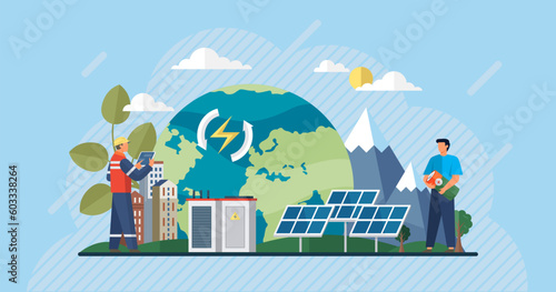 Sale in capital letters, shop assistants with price tag, megaphone, cashier, shopper woman buying gift using credit card, vector flat illustration. Sales and discounts, seasonal offers promotion.