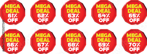 Sale, best and special offer glossy round badges, tags, labels, stickers, vector isolated illustration. Realistic shiny sale promo banners, signs.