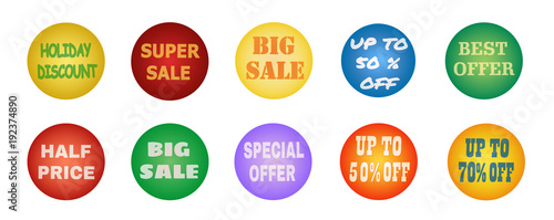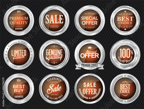 Sale, best and special offer glossy round badges, tags, labels, stickers, vector isolated illustration. Realistic shiny sale promo banners, signs.
