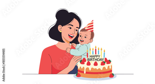 Salesman offering fresh strawberry harvest vector icon isolated on white background