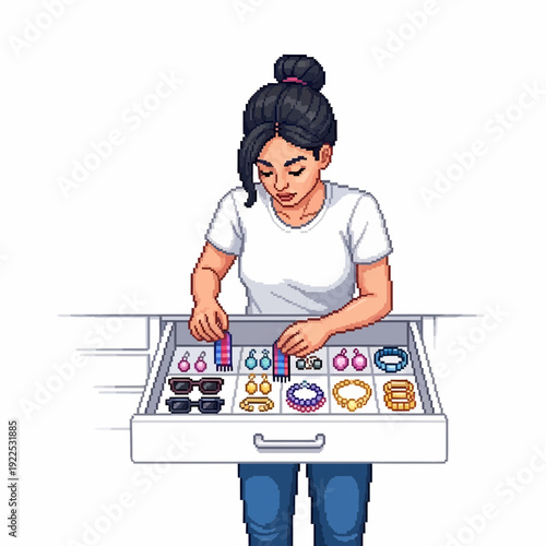 Saleswoman at cosmetics store showcase vector icon isolated on white background