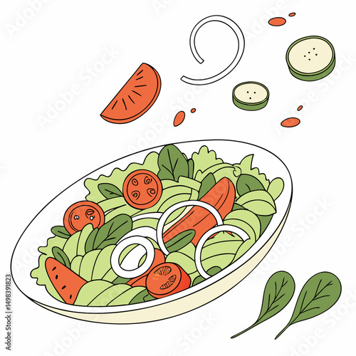 Salmon red fish steaks, fillet with lemon slices, pepper and rosemary spicy herb falling into frying pan, vector illustration. Cooking tasty healthy seafood composition for restaurant menu, recipe etc