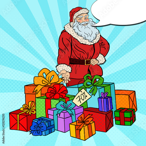Santa claus vector illustration in comic pop art style. Merry Christmas holiday concept poster and greetings card.