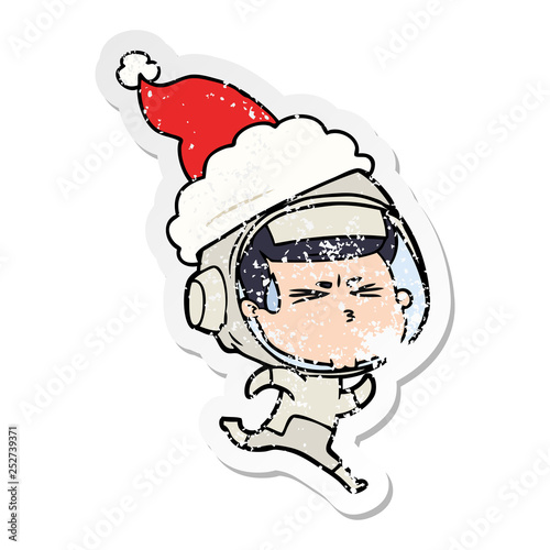 Santa pin up girl in blue dress holding bag with gifts. Vector illustration in comic pop art style. Christmas holidays concept poster.
