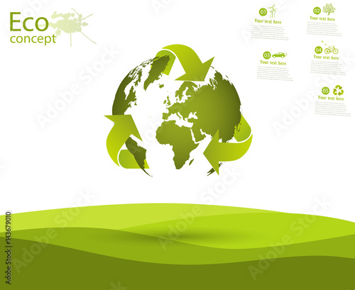 Save the planet concept poster in paper art origami style. Vector illustration paper cut design. Green earth round sign.