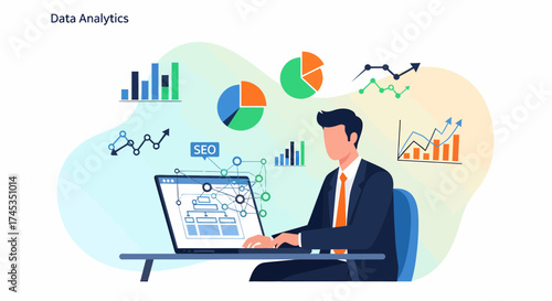 Save time vector. Productivity concept. Man freelancer working laptop sitting on business document near hourglass isometric 3d design
