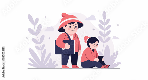 Vector illustration of young man and woman jogging in the park. Scamper concept flat style design element.