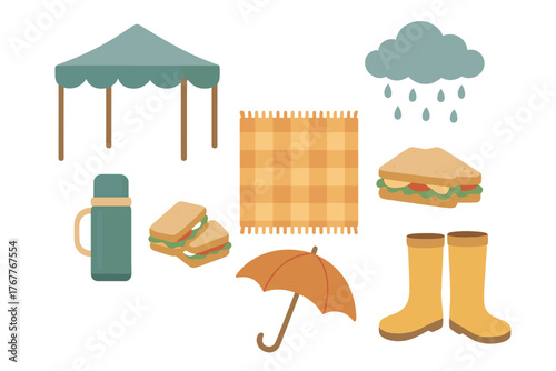 Scattered clothes, female stuff in chest of drawers, on chair, on table, on coffee table, in laundry basket, flat vector isolated illustration. Mess, disorder.