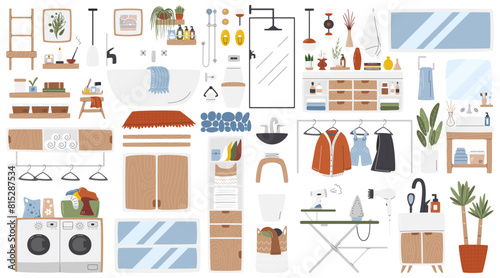 Scattered dirty clothes in bathroom vector icon isolated on white background