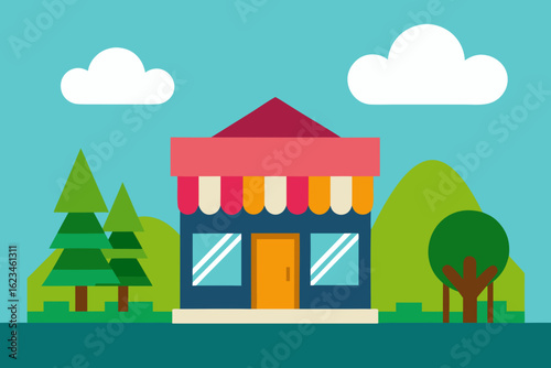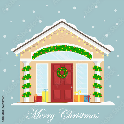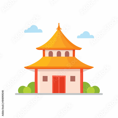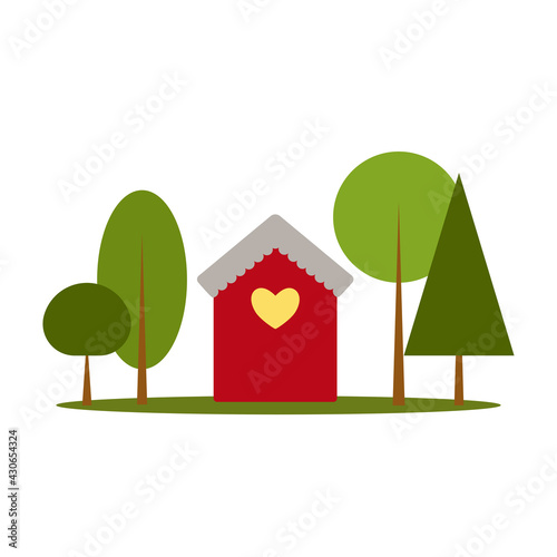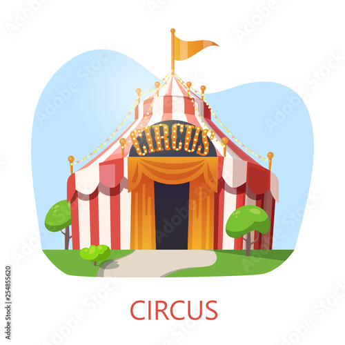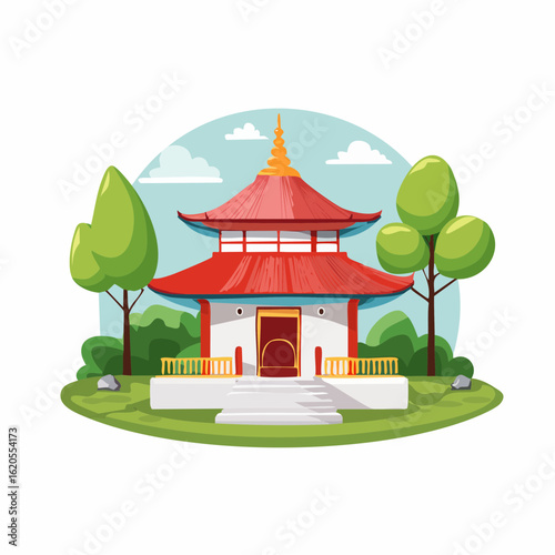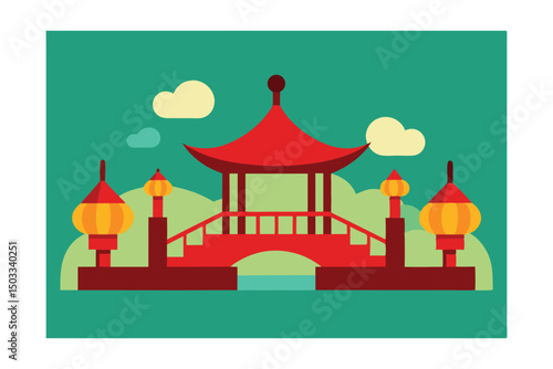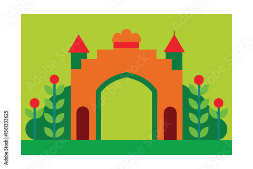 Vector illustration of wedding arch decorated with flowers. Scenery of outdoors wedding ceremony flat style design element.