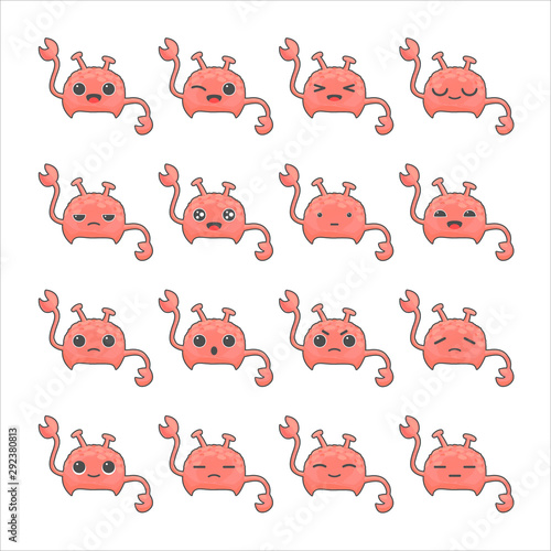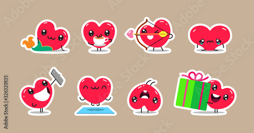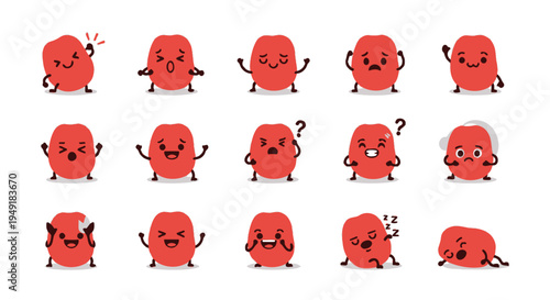 School bag mascot with different emotion vector set. Happy, angry, confused, shocked and excited emoticon character. Funny backpacks reading book and learning illustration. Back to school design