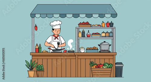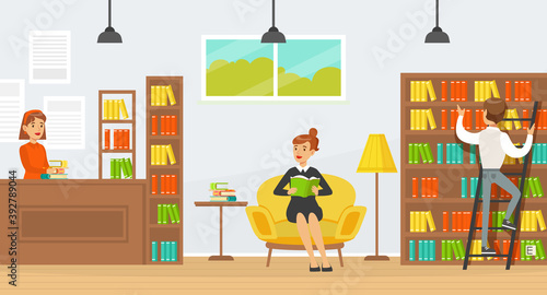 Vector illustration of school teacher sitting at the table and pointing at blackboard, school kids sitting at the desks. Classroom interior. School concept design element in flat style.