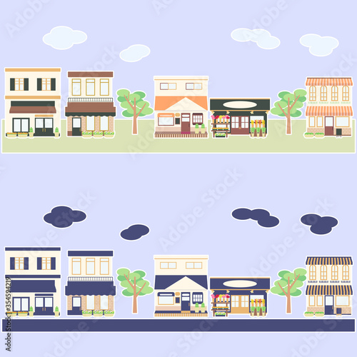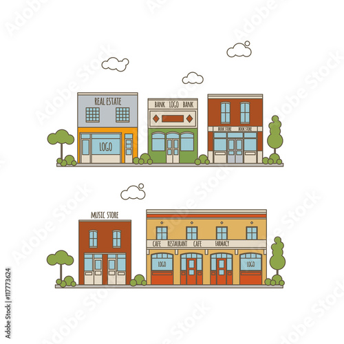 Vector set of posters with classroom and hallway interior with furniture, lockers and school supplies, sports ground with football goals. School concept flat style design elements.