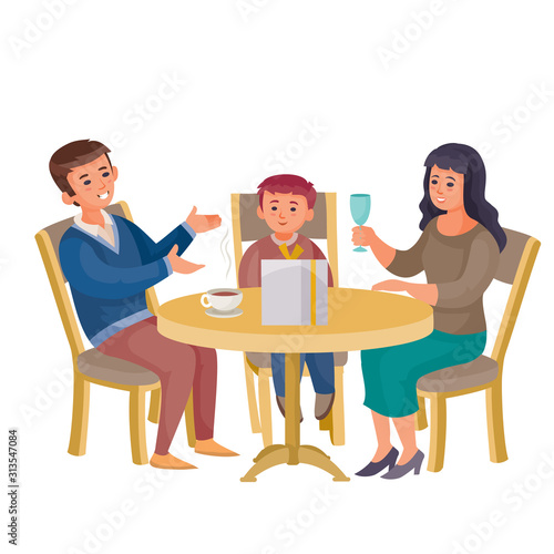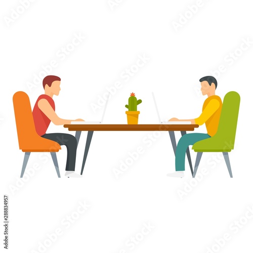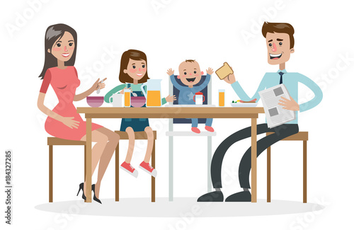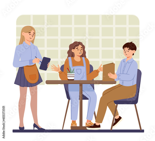 Vector illustration of students having lunch break. School people concept flat style design element, icon isolated on white background.