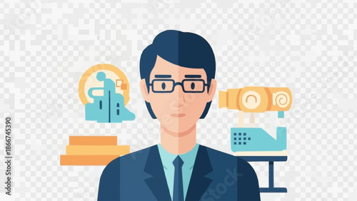Vector illustration of headmaster male with briefcase. School principal flat style design element, icon isolated on white background.