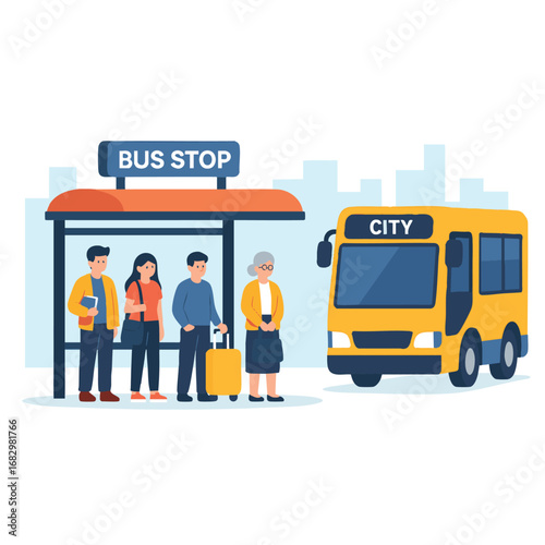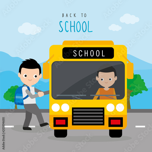 School scene set, flat vector isolated illustration. School lesson, break, bus, students, kids with parents going to class. Education, knowledge.