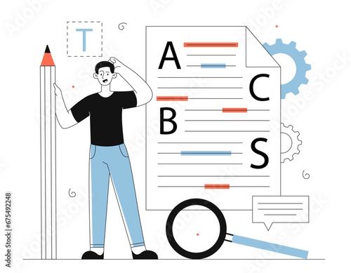 Schoolboy looking through telescope vector icon isolated on white background