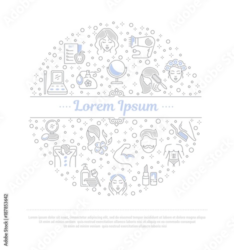 Science advertising vector illustration. Modern thin line art flat style design element with scientific symbols, icons for website banners and printed materials.