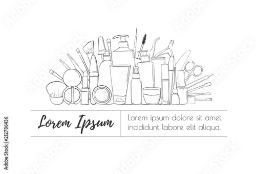 Science banner vector concepts in line style. Chemistry and Physics design elements, symbols and icons. Laboratory workspace and science equipment. Education background