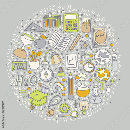 Science concept vector illustration. Modern thin line art flat style design element in the shape of human brain with scientific symbols, icons for website banners and printed materials.