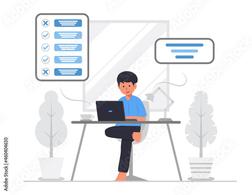 Vector illustration of biologist or chemist male in protective mask and glasses holding test tube. Science people concept flat style design element, icon isolated on white background.