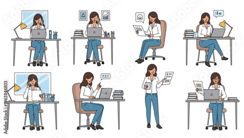 Vector illustration of scientists giving lecture, carrying out experiments and making scientific discoveries using lab equipment. Science people flat symbols, icons isolated on white background.