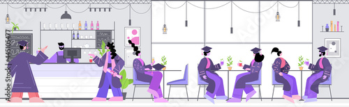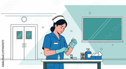 Vector illustration of happy scientist male with test flask making an important scientific discovery. Laboratory equipment and interior. Flat style design.