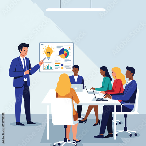 Scientist team working in laboratory vector illustration. Doctors and chemical researchers in lab coat making analysis, conducting experiment with test tube, flask and microscope. Science concept