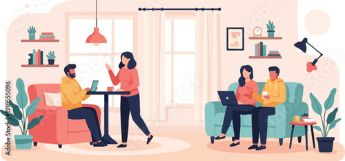 Scientists working in science laboratory, flat vector illustration. Lab workers, researchers conducting scientific experiments, studying genes, dna structure. Genetic science research lab.