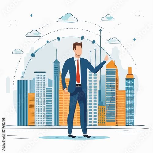Scooter rental, vector flat style design illustration. Man and woman renting electric scooter, eco city transportation. E-scooter sharing service concept for web banner, website page, etc.