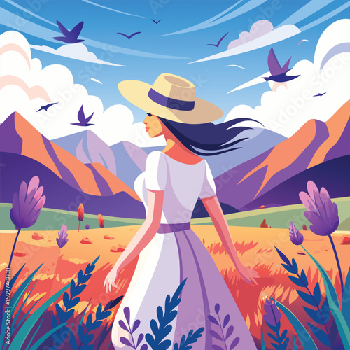 Female scuba diver swimming under water surrounded by floating plastic garbage, flat vector illustration. Water pollution. Ecological problem. Save environment, planet, ocean poster template.