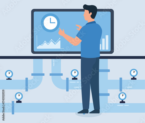 Vector illustration of young male sculpting human figure woman bust. Creative professional sculptor concept design element in flat style.