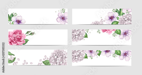 Seasonal spring sale promotion horizontal banner template set. Vector paper cut style floral background for poster, card, flyer, voucher etc.