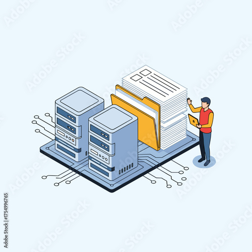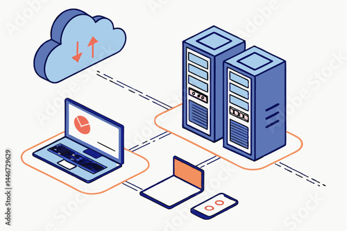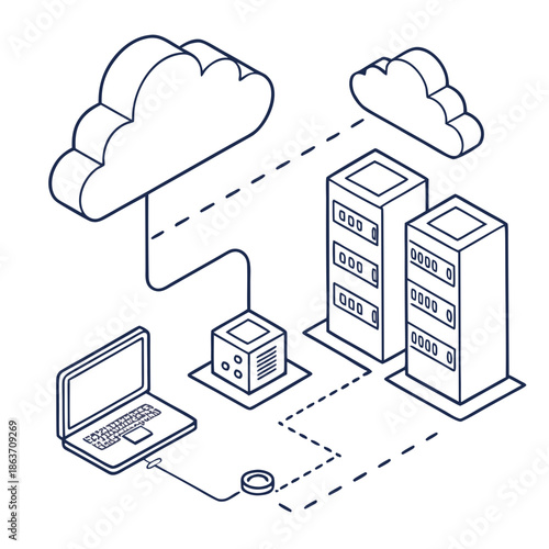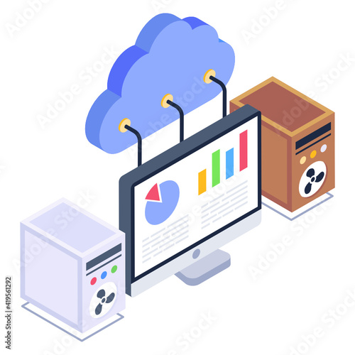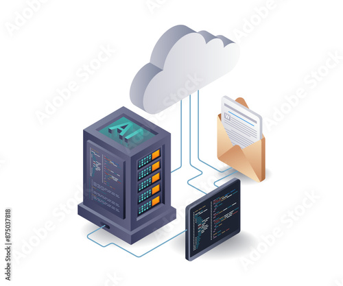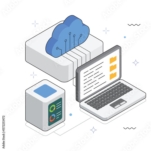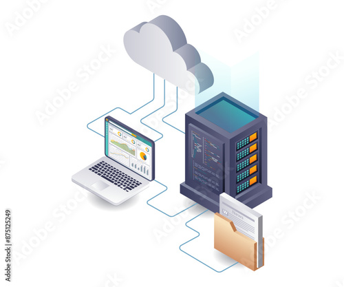 Secure cloud data storage vector. Isometric internet network service technology, information database safe access icon isolated on white background