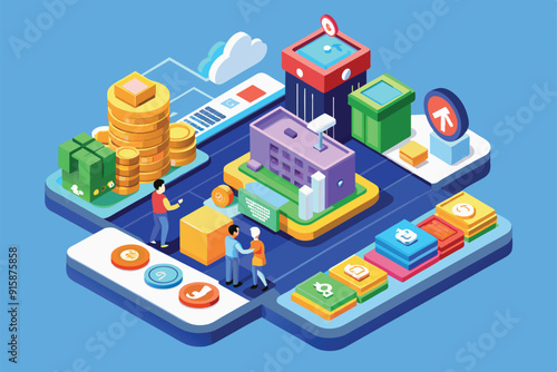Secure online mobile payment vector illustration. Fingerprint access to internet banking service for financial transaction