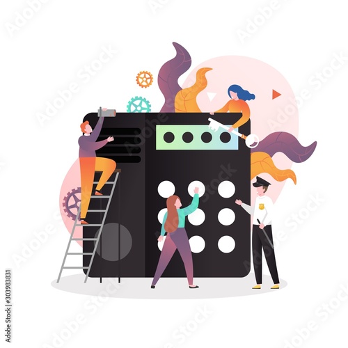 Electronic keypad security code lock with characters, vector illustration. Password door lock, etc. for web banner, website page etc.