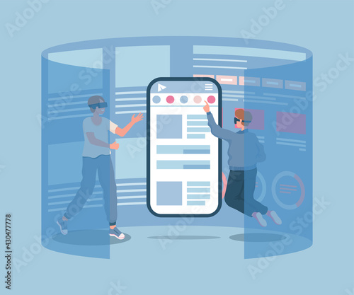 Self ordering service vector website template, landing page design for website and mobile site development. People using fast food restaurant self ordering kiosks.