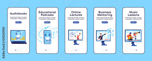 Self service mobile app onboarding screens. Menu banner vector template for website and application development. Supermarket self checkout, fast food restaurant and cinema self-service kiosks.