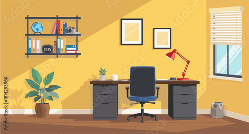 Serious private detective at office workspace vector. Cartoon investigator sitting at table desk illustration. Searching evidences concept