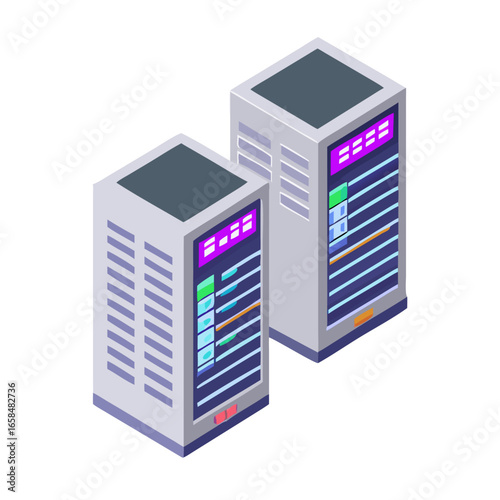 Server rack vector icon. Data center computer, web network and cloud mainframe. Storage virtual information in supercomputer