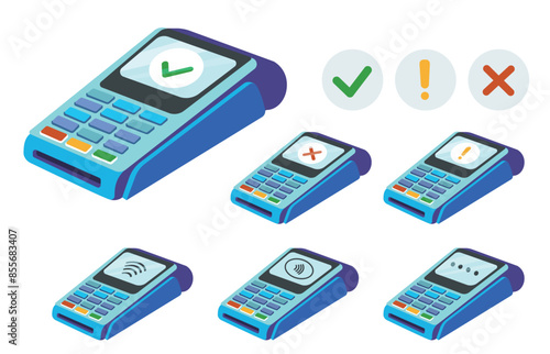 Different payment option and financial operation isolated set with human hands. Cash, contract loan pay, mobile banking, credit card, smartwatch vector illustration