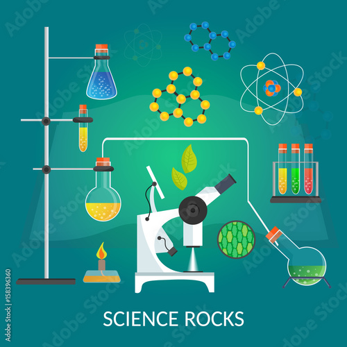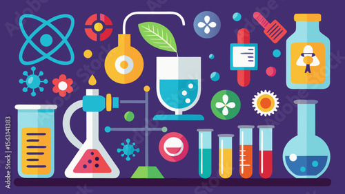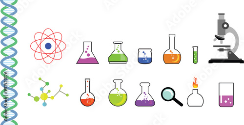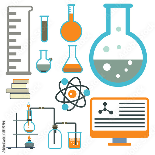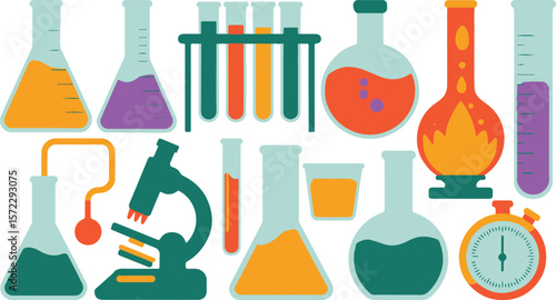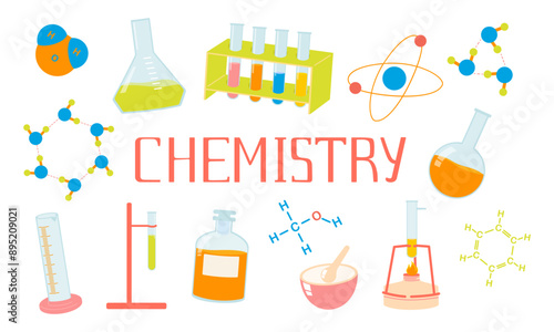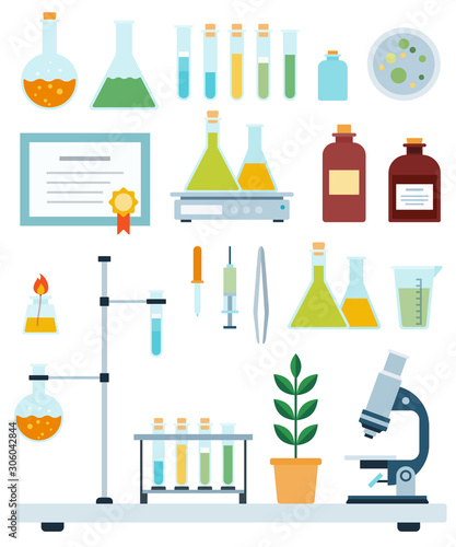 Set of laboratory flasks. Chemistry objects in flat design. Vector illustration.