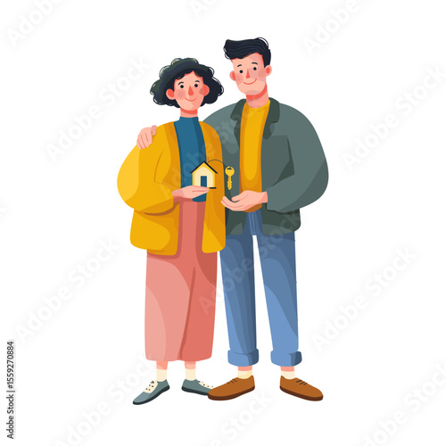 Set of people preparing for celebrating winter holidays. Walking man and woman holding xmas tree, present boxes and purchases. Merry Christmas and Happy New Year shopping vector illustration